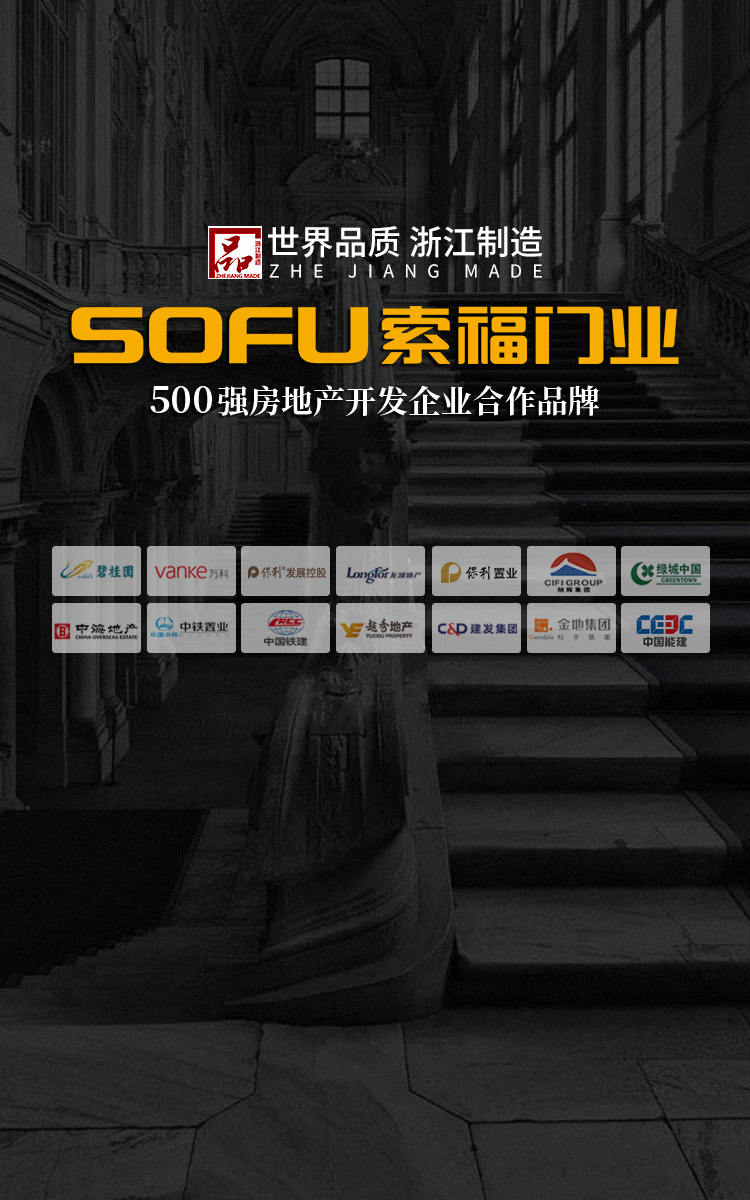 索福門業創建于1998年4月,廠房建筑面積30多萬平方米,年產門類120多萬樘,經過26年的勵精圖治,公司現已發展成為以集團化、網絡化、規模化、品牌化經營新格局的大型企業集團,目前索福在全國擁有近萬家銷售網點,同時與龍湖地產、招商蛇口地產、新城控股、中國鐵建、中梁地產、碧桂園、中國電建、中城聯盟等百強房企建立戰略合作關系......